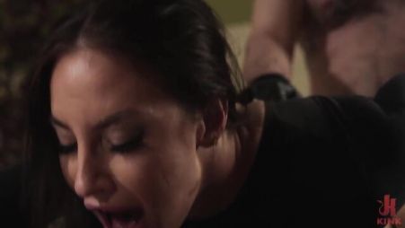 Татуированный мужчина практически все время в офисе проводил, так как у него было много работы всегда. Но ему, конечно, хотелось расслабляться время от времени. Вот для таких случаев у него была одна сучка, с которой он и развлекался так, как ему хотелось. А милфа с большими дойками всегда была готова исполнять его секс-желания и делать так, чтобы он истинного оргазма достигал. Грудастая баба сегодня была со связанными руками и покорно ему делала глубокий минет, а потом был крутой секс на столе в офисе.