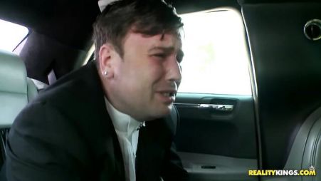 Блондинка в свадебном платье, а рядом жених в костюме - вместе они уже в ресторан направлялись в машине, где их ждали многочисленные гости. Но небольшой конфликт, который случился между молодоженами толкнул невесту в свадебном платье на измену. Прямо в присутствии своего жениха похотливая невеста стала делать минет водителю машины, а тот в ответ ее аппетитную пилотку куни радовал. Жених едва не плакал от растроенных чувств, а вот блондинка-невеста продолжала веселиться на чужом члене.